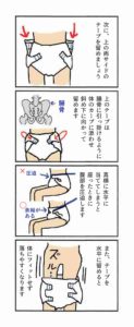 * 注意点として… 身体にフィットしているか、体の中心とおむつの中心がずれていないか